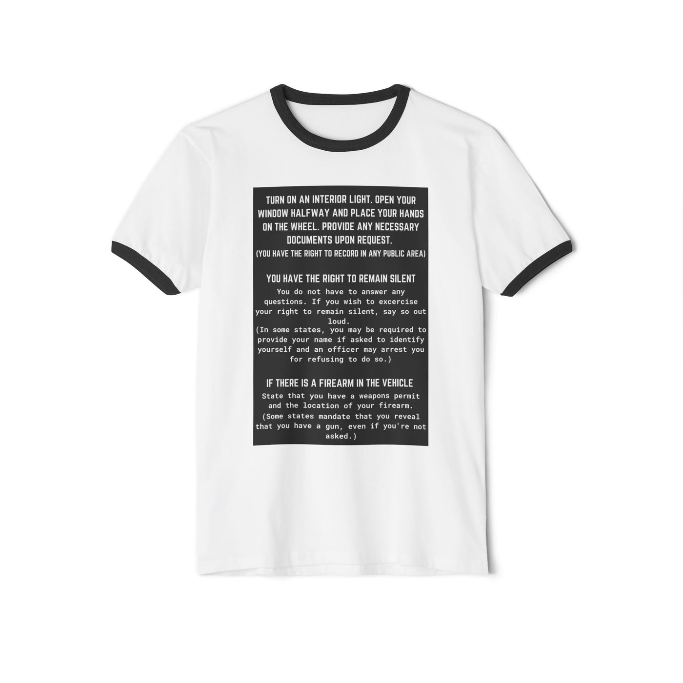Luxury and Durability that suits everyone's preferences for daily style. Educate and empower yourself and everyone on your path with this hoodie featuring the Red, Black, and that Green logo on the back and white text that provides step by step instruction on what to do when pulled over by law enforcement, beginning on the front and concluding on the back of the hoodie.